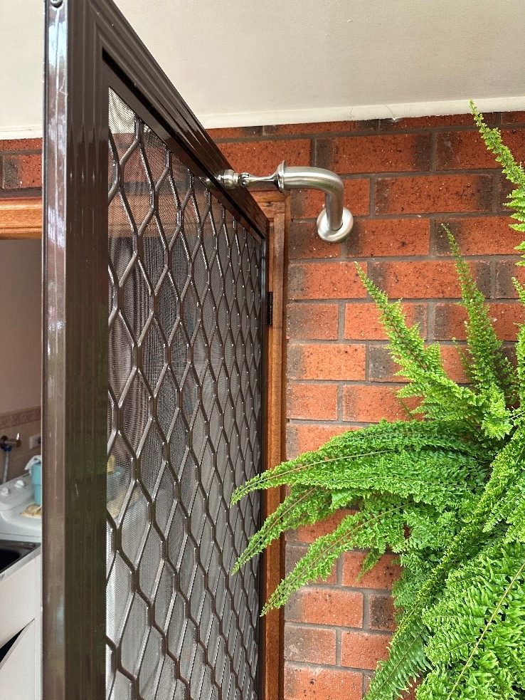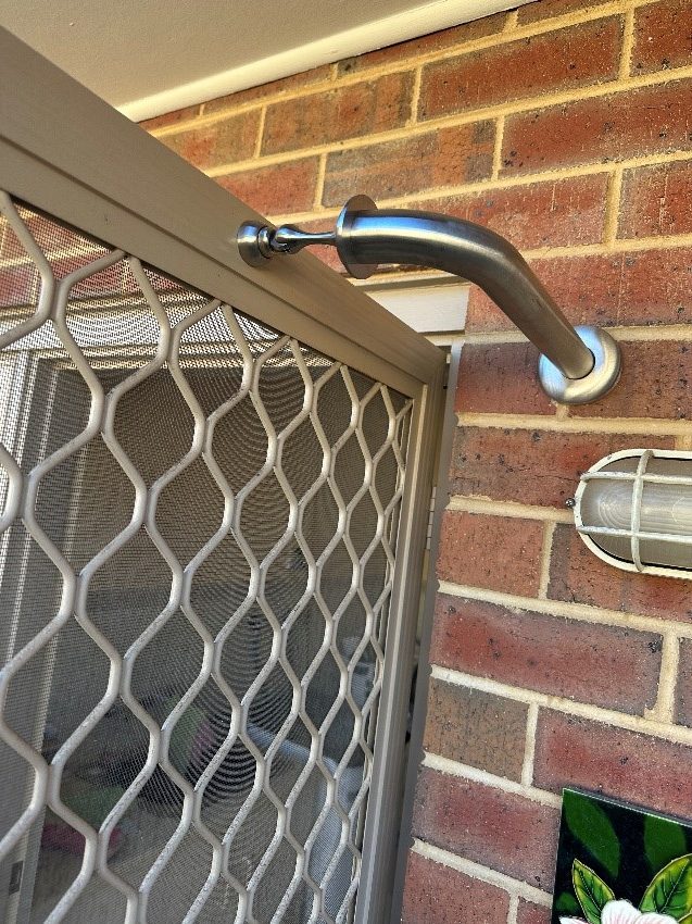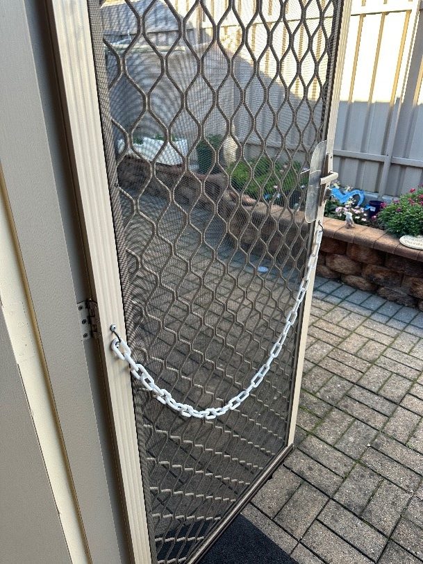 Magnets are used to assist clients in transferring in and out of doorways with ease. The magnet is installed to securely hold the door open, reducing the need to manually manage the door while moving through it. This simple solution enhances safety and independence, especially for individuals using mobility aids.