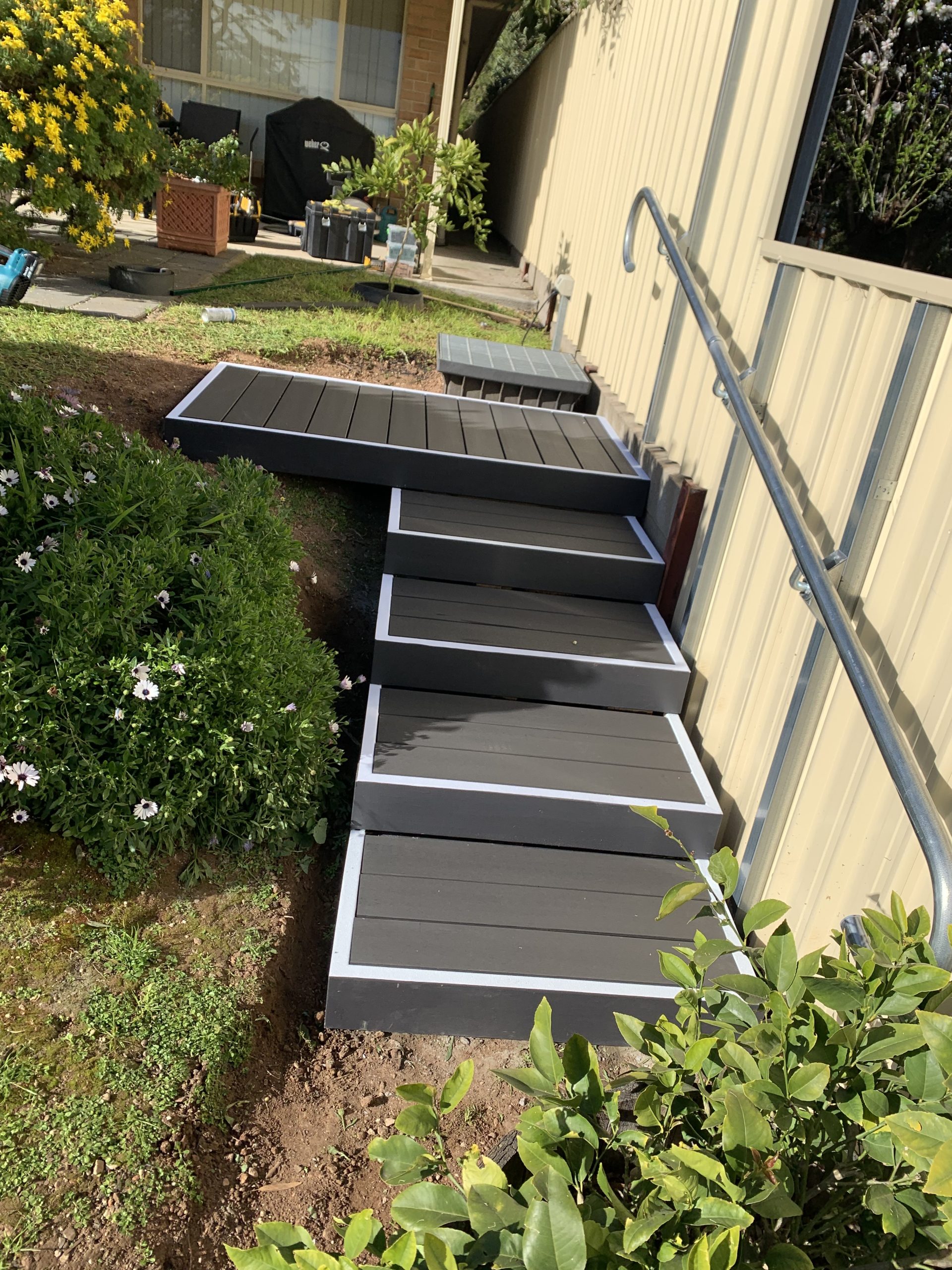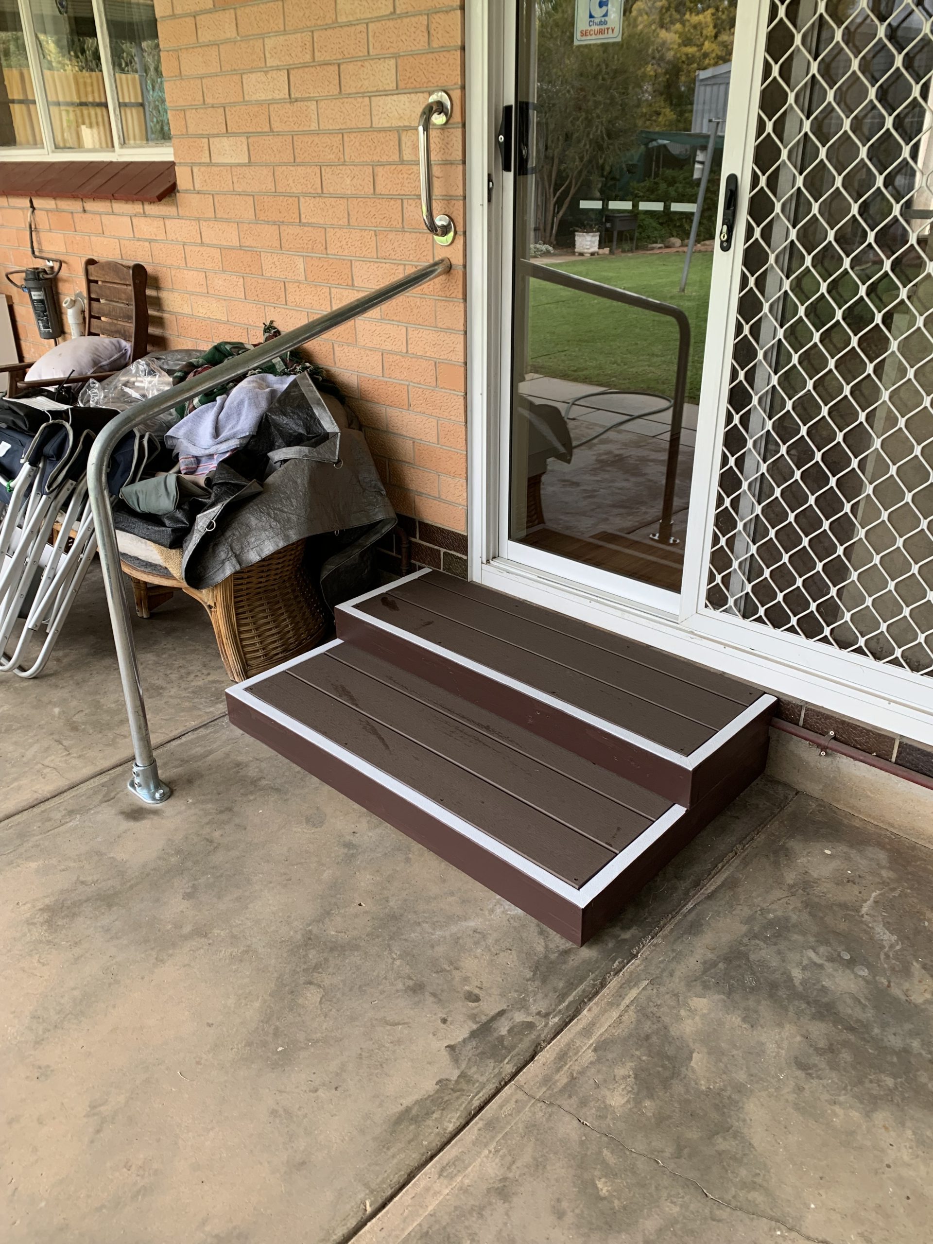 All steps/platforms are custom made to suit individual needs and specific site requirements. Designed for outdoor use, each ramp is constructed to comply with AS 1428.1 accessibility standards, ensuring safe and reliable access. We use EKO Deck — a durable, low-maintenance, non-slip decking material with a slip rating of R11 and P5 — for enhanced safety in both wet and dry conditions. EKO Deck requires no oiling, painting, or sealing, making it an ideal long-term solution. Steps/Platforms are available in a range of colours including Grey, Brown, and Red, offering both functionality and a modern, clean finish.